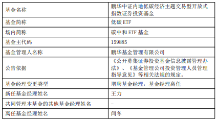 中国经济网北京10月20日电 近日,鹏华基金公告称,鹏华中证内地低碳经济主题ETF与鹏华中证内地低碳经济主题ETF联合租赁王力。王莉曾任上海华腾软件系统有限公司软件工程师、中国金融期货交易所技术部高级软件工程师。 2017年11月加入鹏华基金管理有限公司,担任量化及衍生品投资部高级量化研究员、高级量化研究员。现任指数基金及量化投资部经理。 2025年9月,担任鹏华中证一带一路主题指数(LOF)基金经理,2025年9月,担任鹏华中证一带一路主题指数(LOF)基金经理ua中证高铁行业指数(LOF)。王莉具有基金经营资格。鹏华中证内地低碳经济主题ETF成立于2021年4月6日,截至2025年10月17日,本年收益率为25.65%,成立以来收益率为14.93%,合计净值1.1493元。鹏华中证内地低碳经济主题ETF Link A/C成立于2021年7月13日,截至2025年10月17日,本年收益率分别为24.85%、24.64%,成立以来收益率分别为-19.76%、-20.44%,累计净值分别为0.8024元、0.7956元。鹏华中证内地低碳经济主题ETF连接一号成立于2024年12月9日,2025年10月17日,本年收益率为24.18%,成立以来收益率为21.94%,累计净值1.2194元。