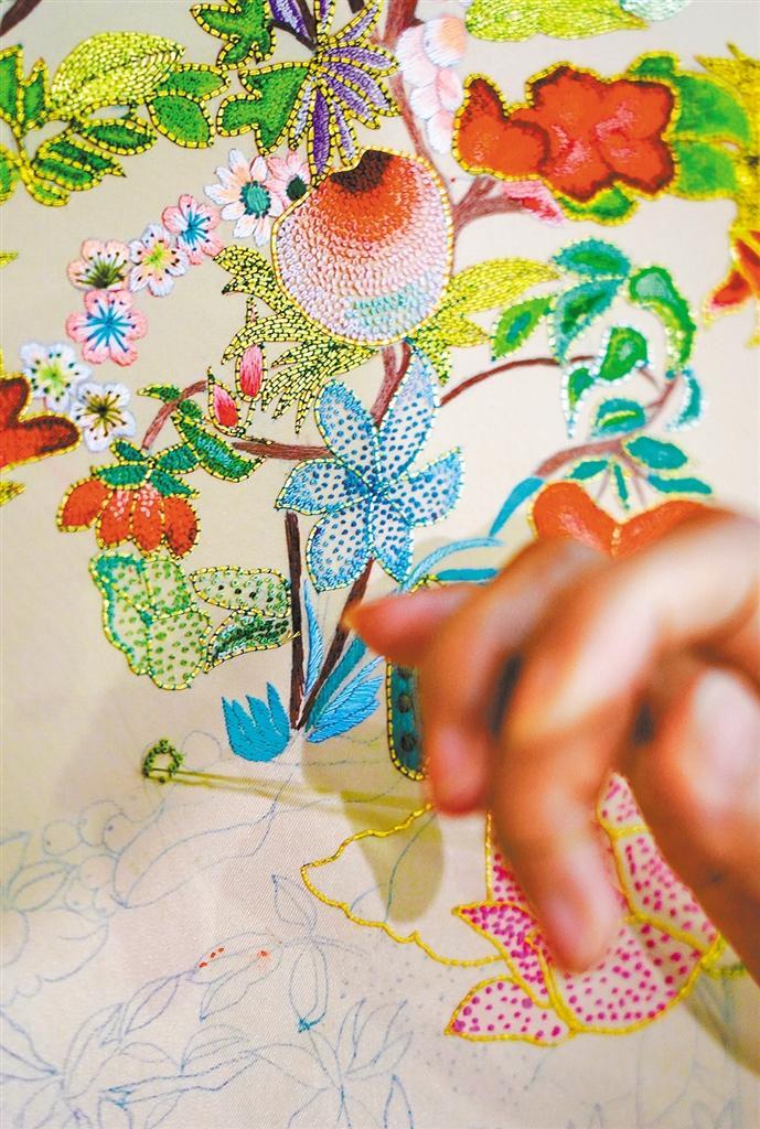 汉绣作品 9月14日,汉绣传承人省代表王子异(右一)向学生们介绍汉绣针法。他长期研究汉绣荆楚地区的文化艺术风格,不断修正汉绣教学模式。 9月12日,在武汉举办的2025中国文化旅游产业博览会上,汉绣非物质文化遗产代表性传承人史玉祥(左)向观众介绍汉绣创意作品。 9月13日,观众在武汉市洪山区荆楚纺织非物质文化遗产博物馆观看汉绣服饰。 9月1日2、汉绣传承人省代表任伟(右)向学生介绍汉绣技艺。 9月14日,在武汉市汉阳区五春里社区,当地居民在社区活动中畅谈汉绣派扇绣技艺。 9月13日,武汉纺织大学叶红光教授(左二)为学生讲授中国刺绣针法特点。汉绣,是我国传统刺绣技艺的特色之一,起源于春秋战国时期的楚绣。盛于唐代,盛于清代。被誉为“荆楚艺术瑰宝,针尖传奇”。 2008年被列入国家级非物质文化遗产代表性项目名录。楚地自古推崇红、黄、蓝、白、黑五种颜色。汉绣沿袭了这一传统,以针法粗犷、色彩丰富、构思大胆而著称。汉绣以铺、压、织、锁、扣、卷、盖为主要缝合方法,以五色为首选,夹金银,采用块面分层破法,即“平金夹绣,分层破色”。近年来,武汉市不断加大投入,通过成立汉绣艺术研究院等,加强汉绣技艺的保护和传承,汉绣与现代生活的距离越来越近。绣轴、汉绣摆件、扇子、包包、书签、茶旗、杯垫、眼镜、耳环等含有汉绣元素的特色绣品深受年轻人的喜爱和追捧。汉绣还亮相外交部湖北全球推介活动进入世界。 。